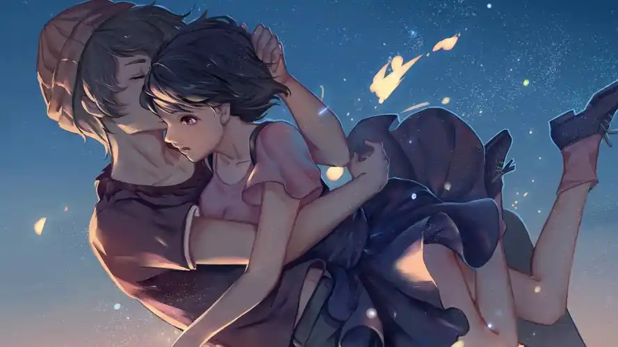 男孩,女孩,拥抱,天空,浪漫动漫情侣壁纸