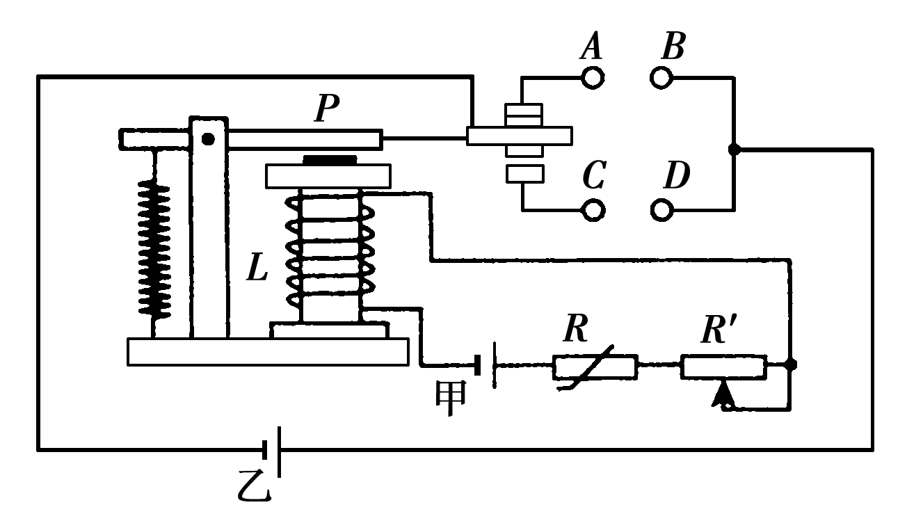 简单的恒温控制电路其中热敏电阻的阻值会随温度的升高而减小电源甲与