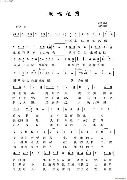 歌唱祖国_歌唱祖国简谱_歌唱祖国吉他谱_钢琴谱-查图片