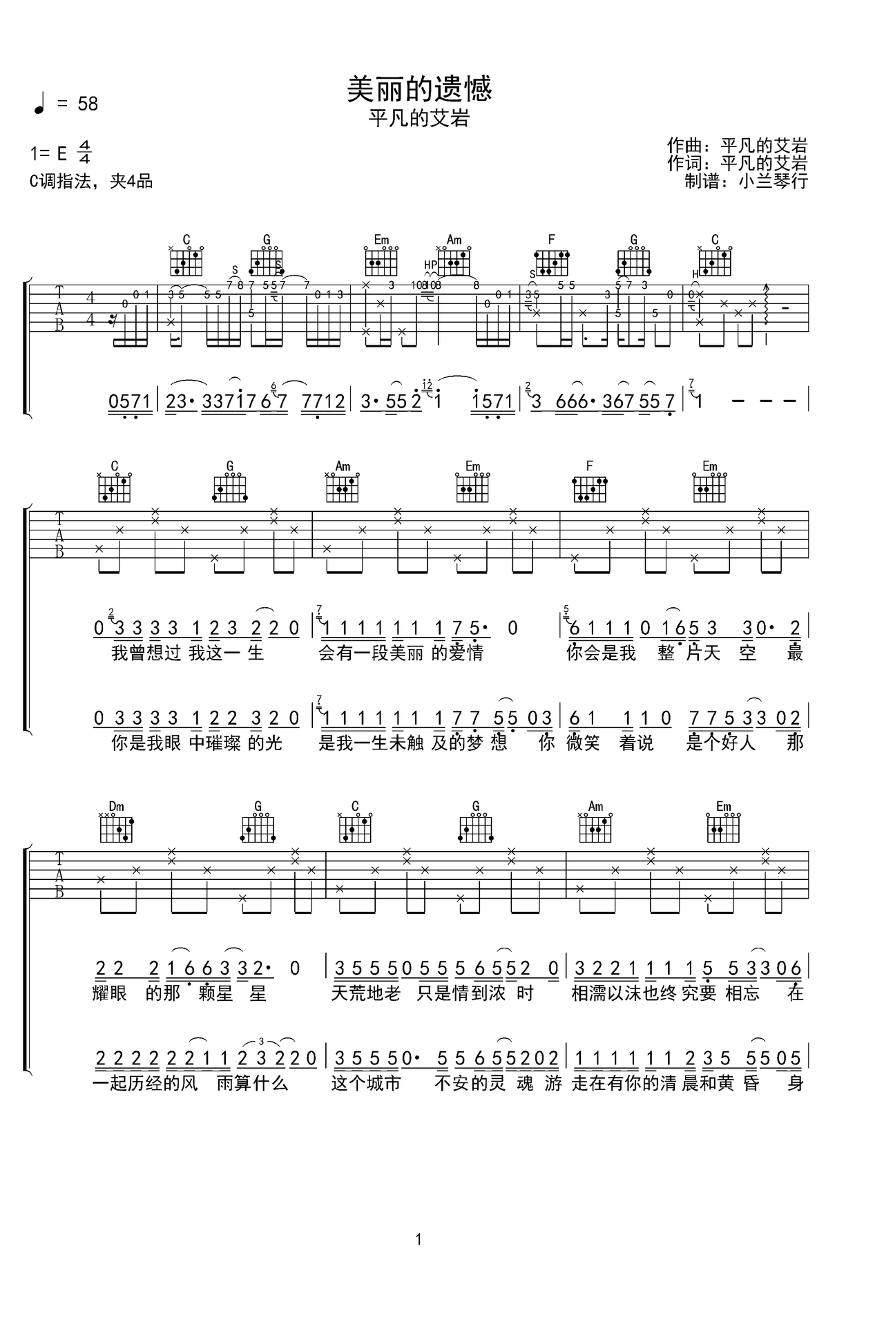 美丽的遗憾吉他谱-弹唱谱-e大调-虫虫吉他