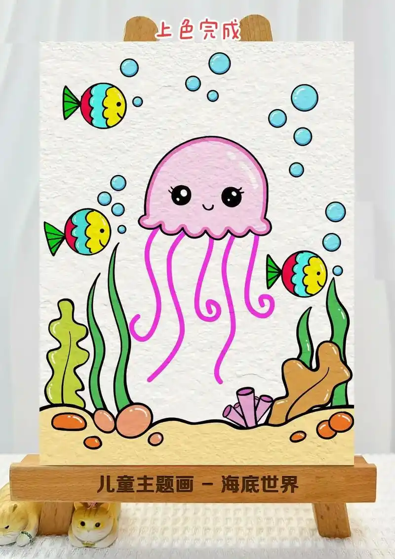 海底世界主题画,跟着步骤一起来画简单易学的水母画吧.#海底世 - 抖音