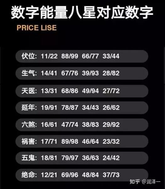 易经数字能量对照表