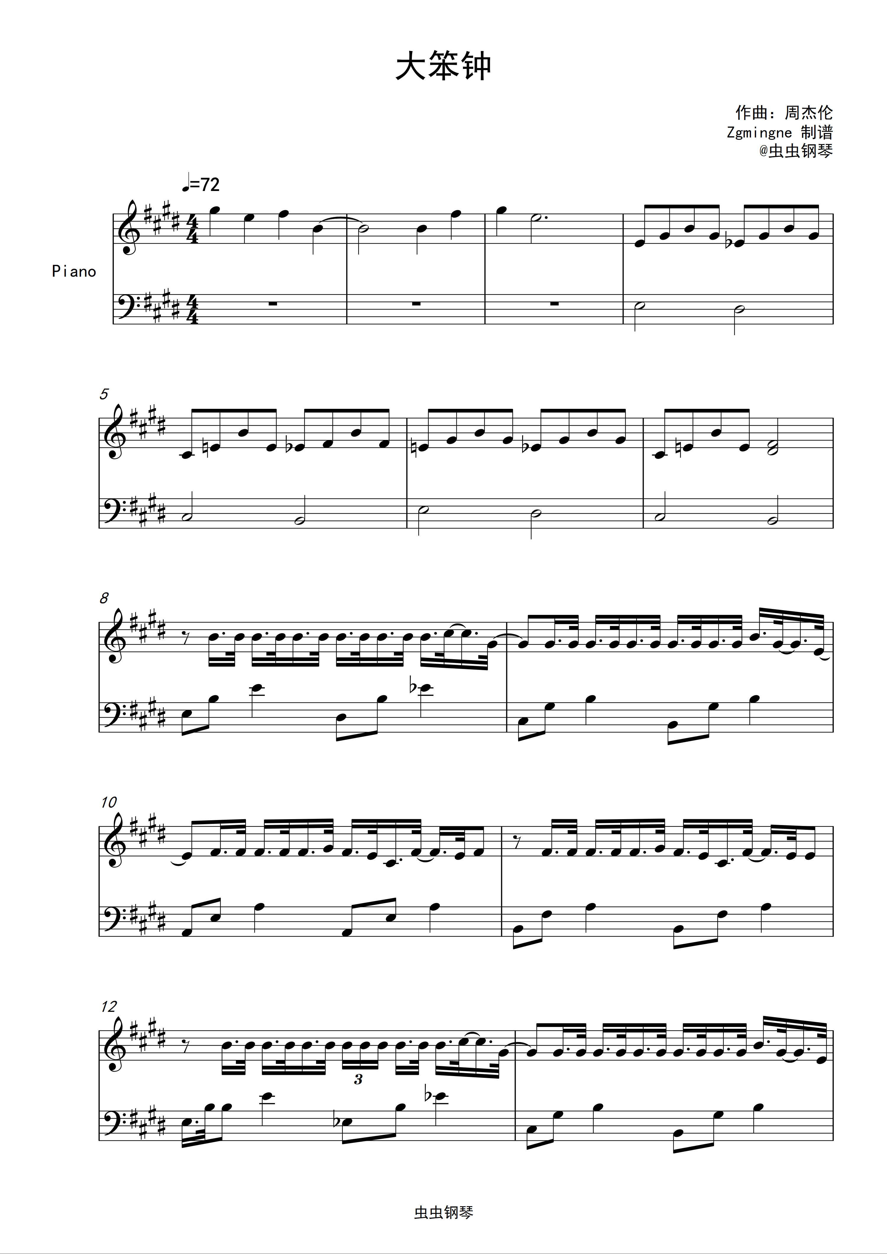 大笨钟—周杰伦[杰迷演奏版]钢琴谱-秋璇礼师-虫虫钢琴