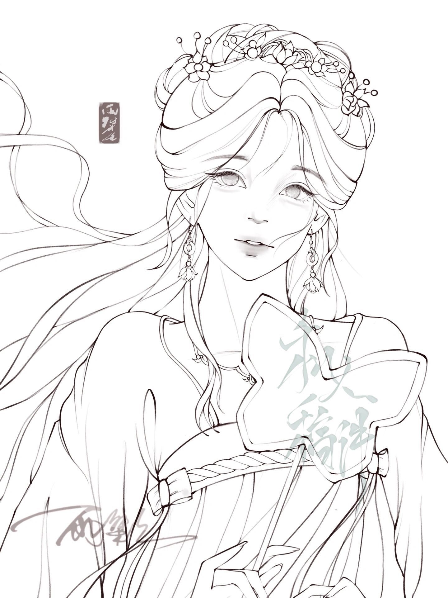 古风少女线稿练习佳儿团练