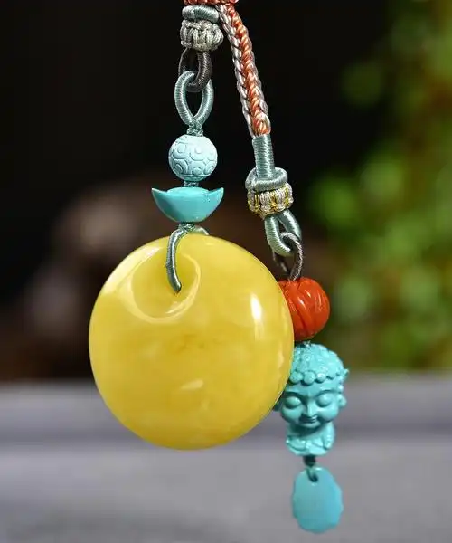 俄罗斯鸡油黄蜜蜡滴水吊坠搭配设计款6.1mm蜜蜡项