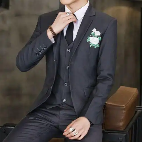 春季西服套装男士修身商务西服三件套结婚小西装新郎礼服职业装男