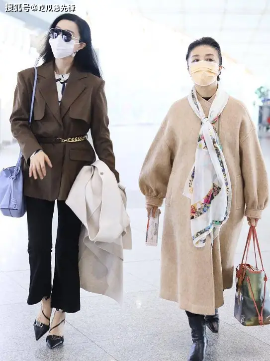 43岁范冰冰新状态和妈妈泰国合影在机场一个人推三个箱子