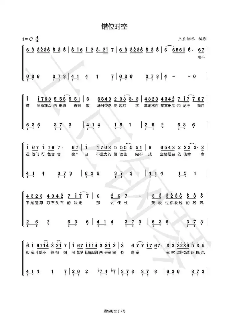 错位时空钢琴谱