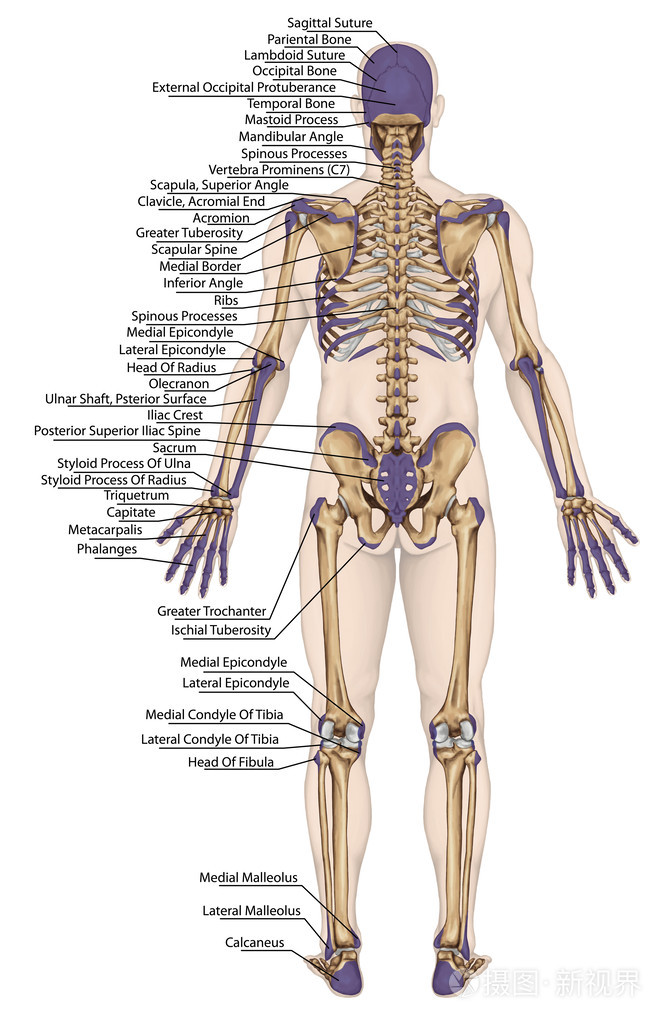 解剖人体,人体骨骼,解剖人体骨骼系统,身体表面轮廓及明显骨突起的