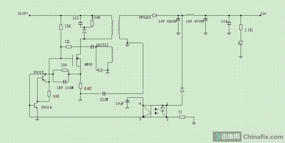 12v监控电源适配器 电路分析