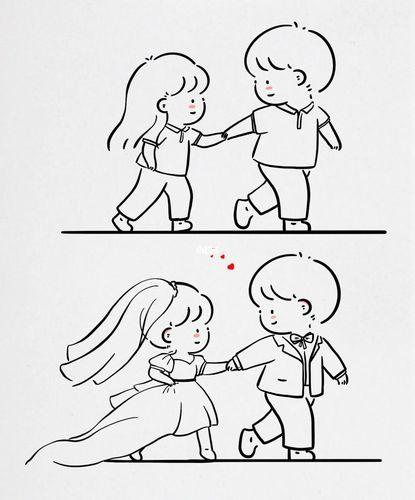 情人节专题简笔画,情侣简笔画.看了这几幅画,我都想恋爱了!