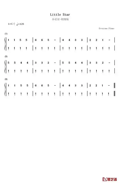 小星星(原版)钢琴双手简谱 钢琴谱 钢琴简谱
