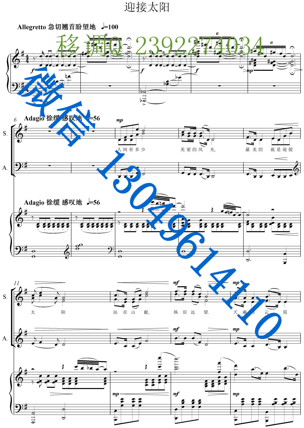 迎接太阳 合唱谱 五线谱 声乐正谱 钢琴伴奏谱