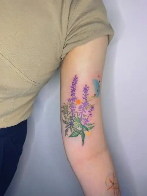 美女是张歆艺忠实粉丝,对泰国刺符也非常着迷.所以选择了九层塔.