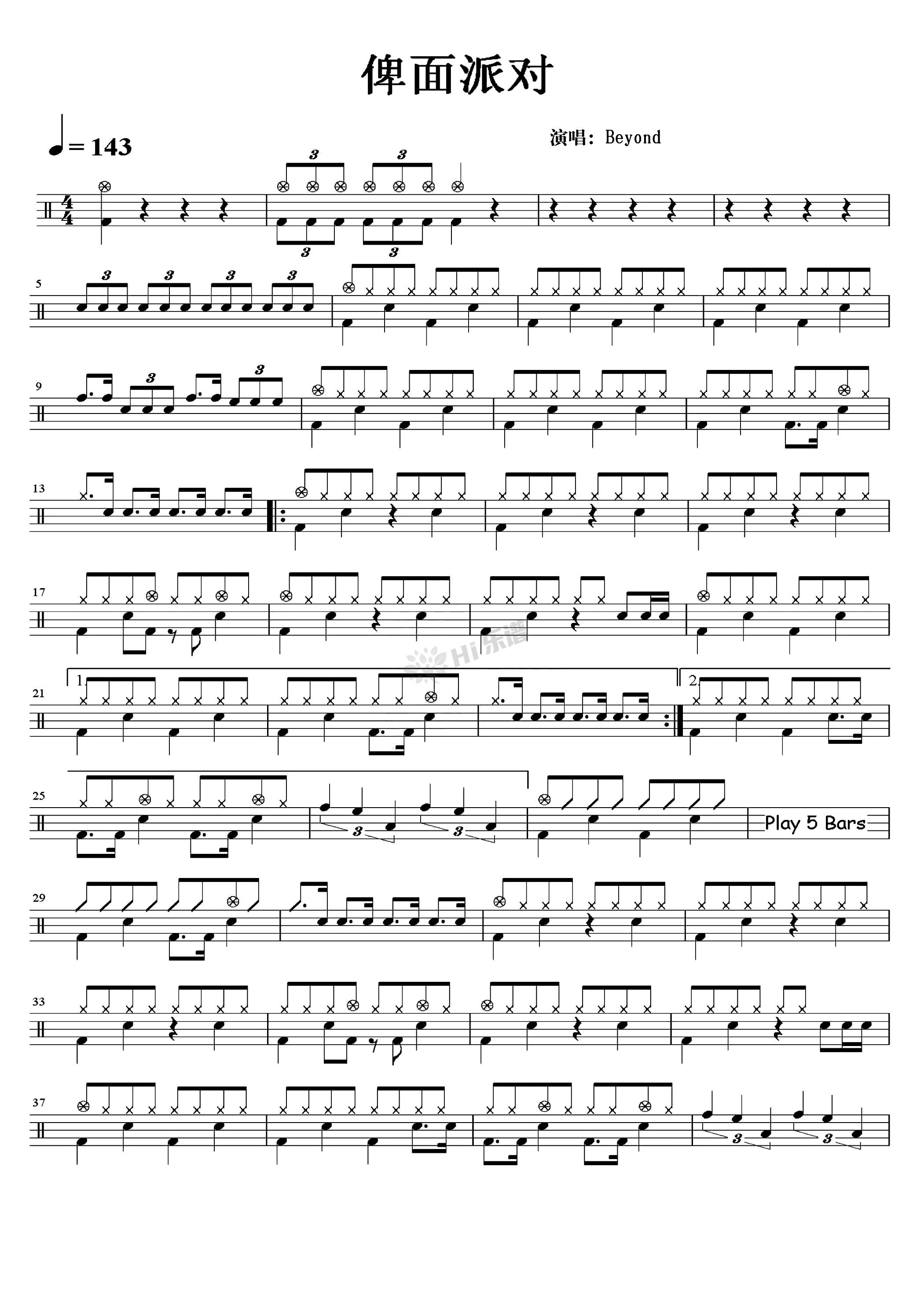 《俾面派对》 beyond & 高清架子鼓谱完整版