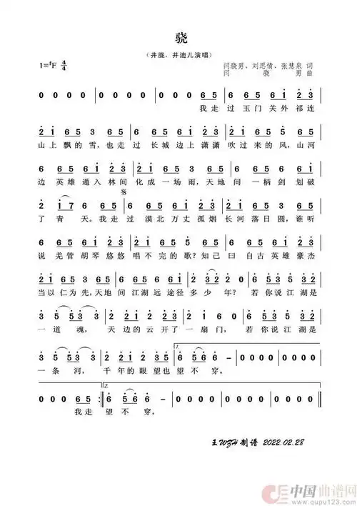 骁简谱-井胧,井迪儿演唱-王wzh制谱制作曲谱1