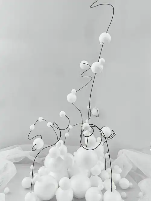 立体构成作业3-体块构成 材料:卡纸1张,镭射纸1张,球体泡沫3种类型,2