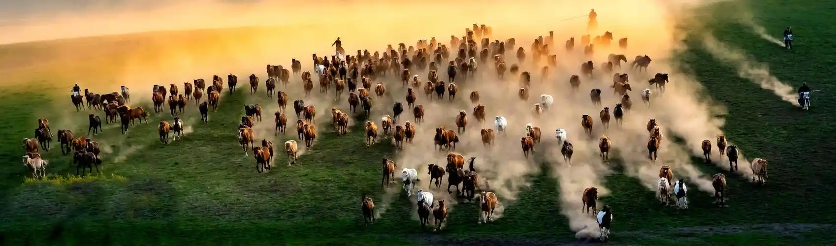 夏日时节内蒙古锡林郭勒草原骏马奔腾