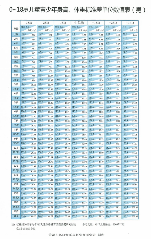 儿童身高体重标准表,0-18岁儿童标准身高对照表