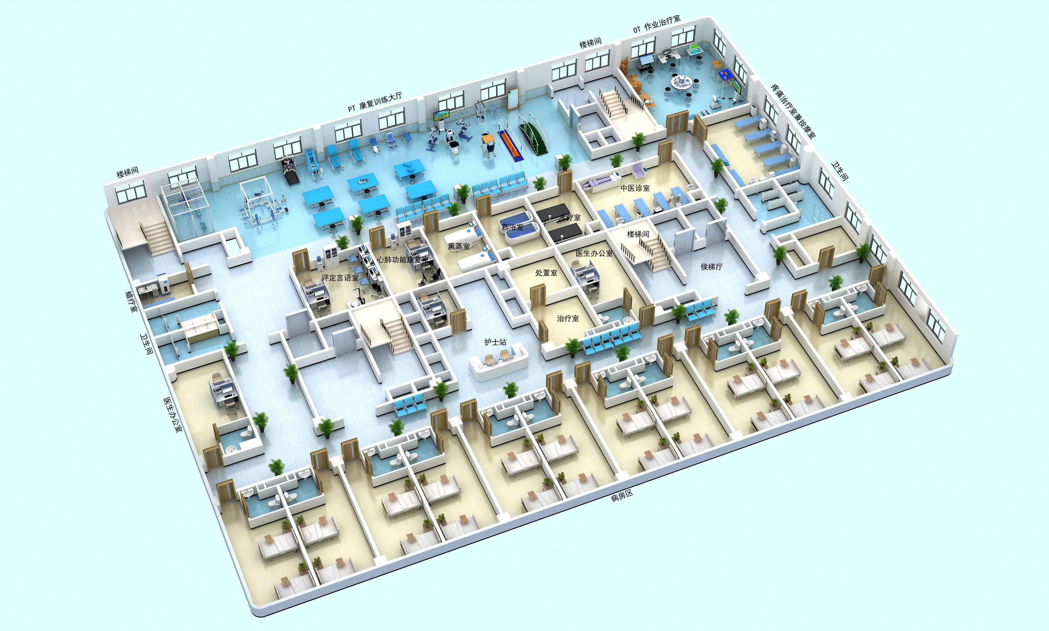 左右的机构使用,90平方的空间基本满足了老年人对基础康复的训练要求