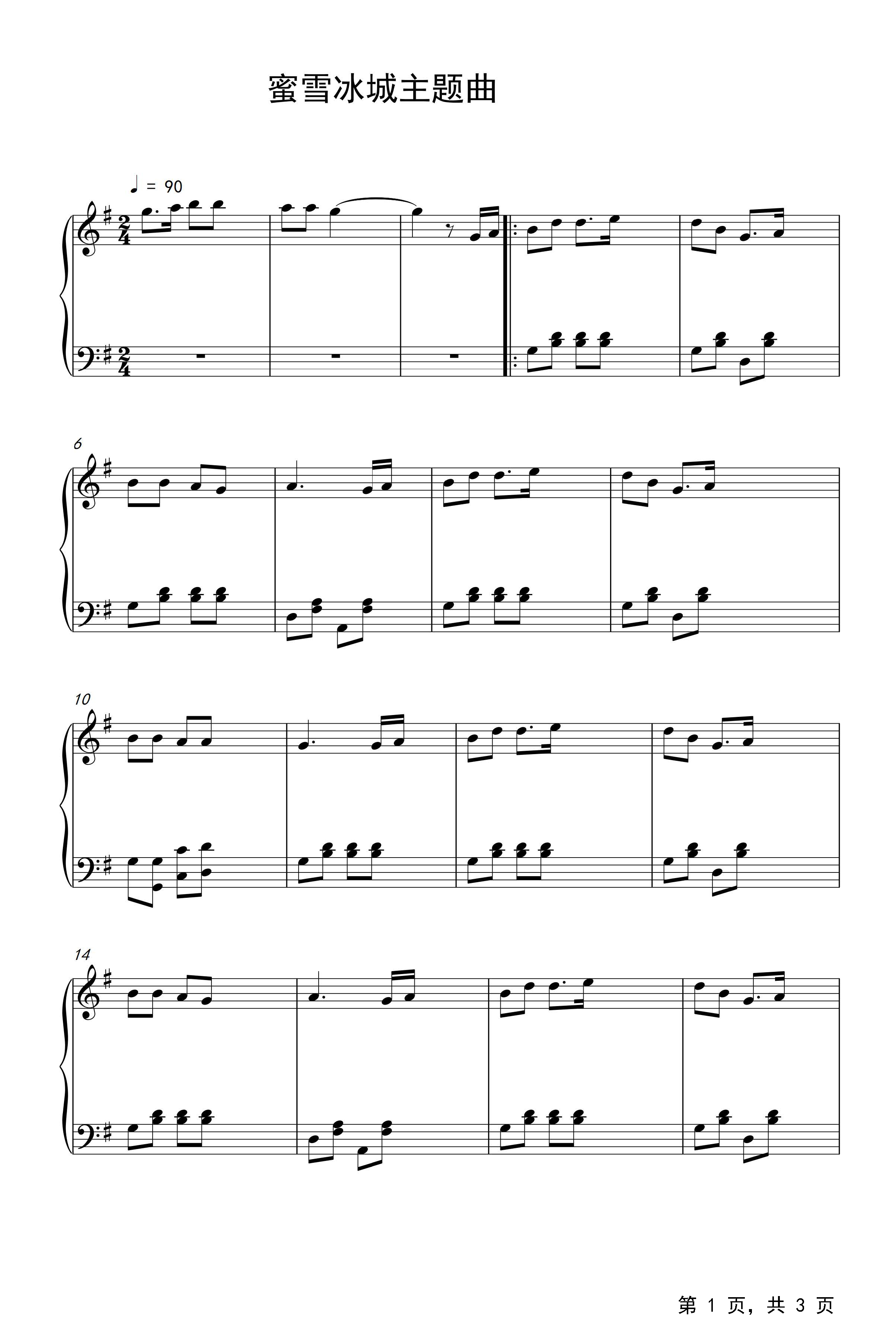 蜜雪冰城主题曲钢琴谱蜜雪冰城g调流行钢琴五线谱