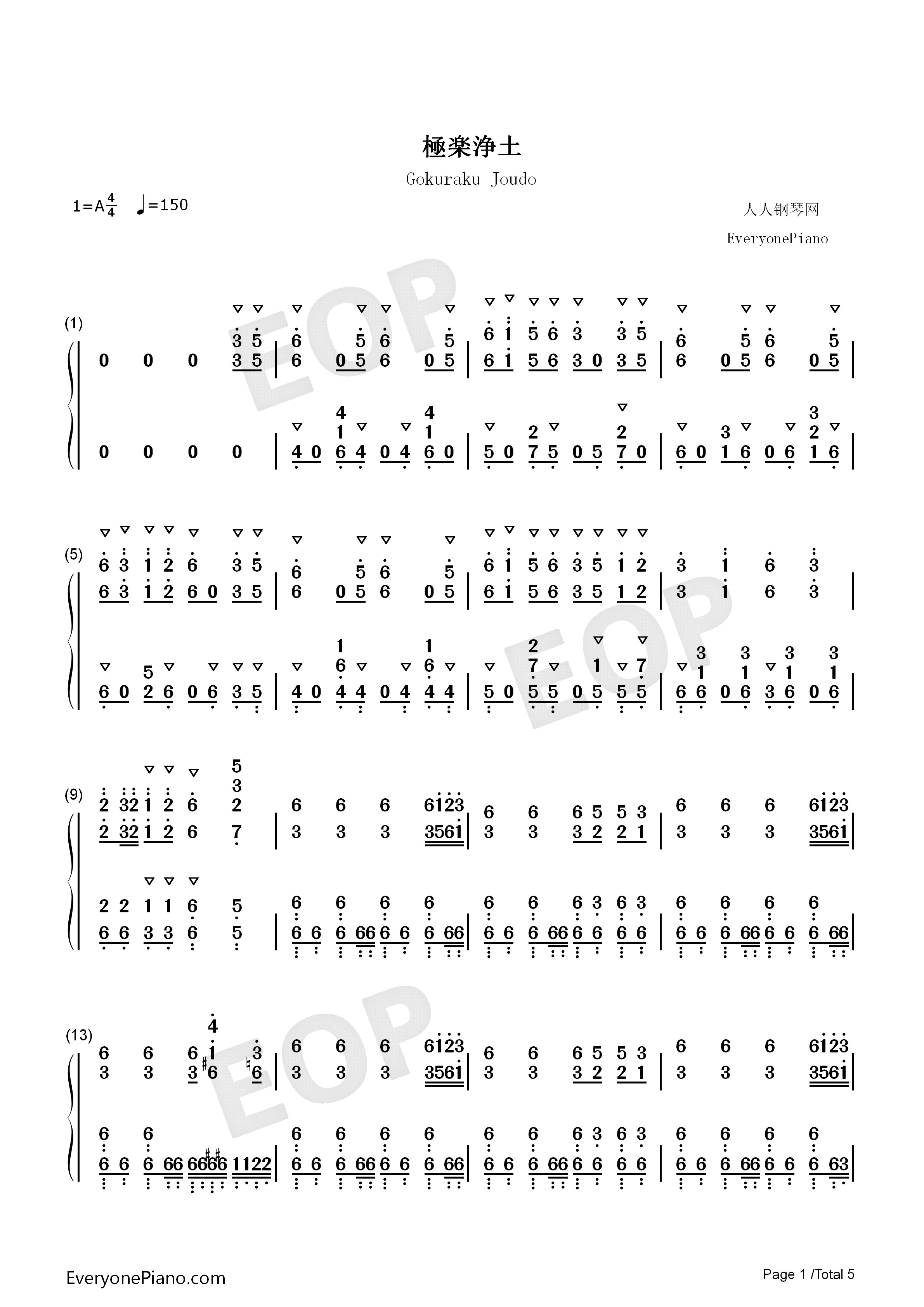 极乐净土-garnidelia-钢琴谱文件(五线谱,双手简谱,数字谱,midi,pdf)