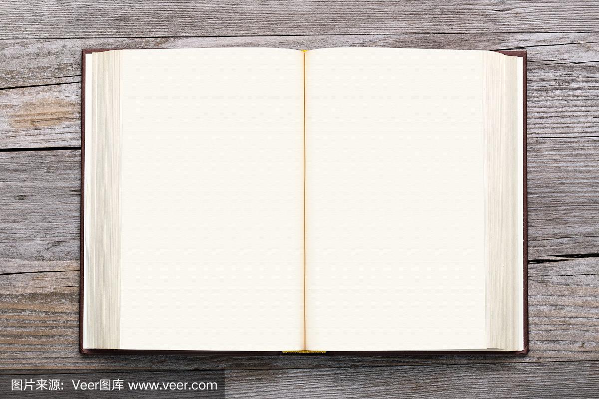 本打开的书的空白页上垃圾木材背景照片