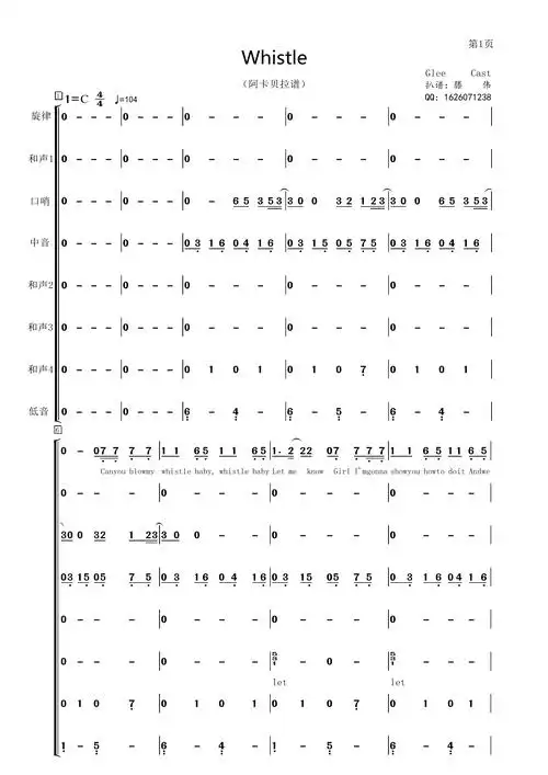 whistle阿卡贝拉谱合唱谱