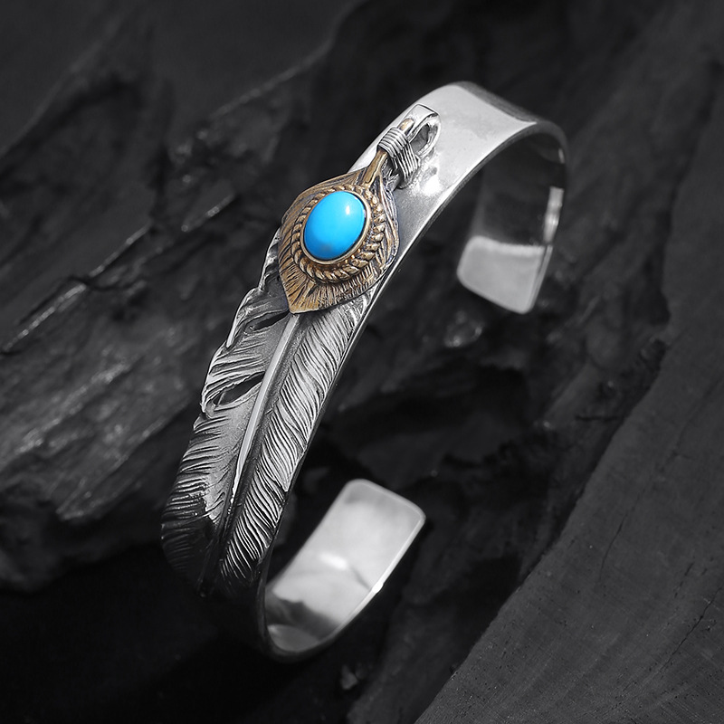 泰银复古手镯 s925纯银羽毛手环goros 高桥吾郎男女士商务首饰品
