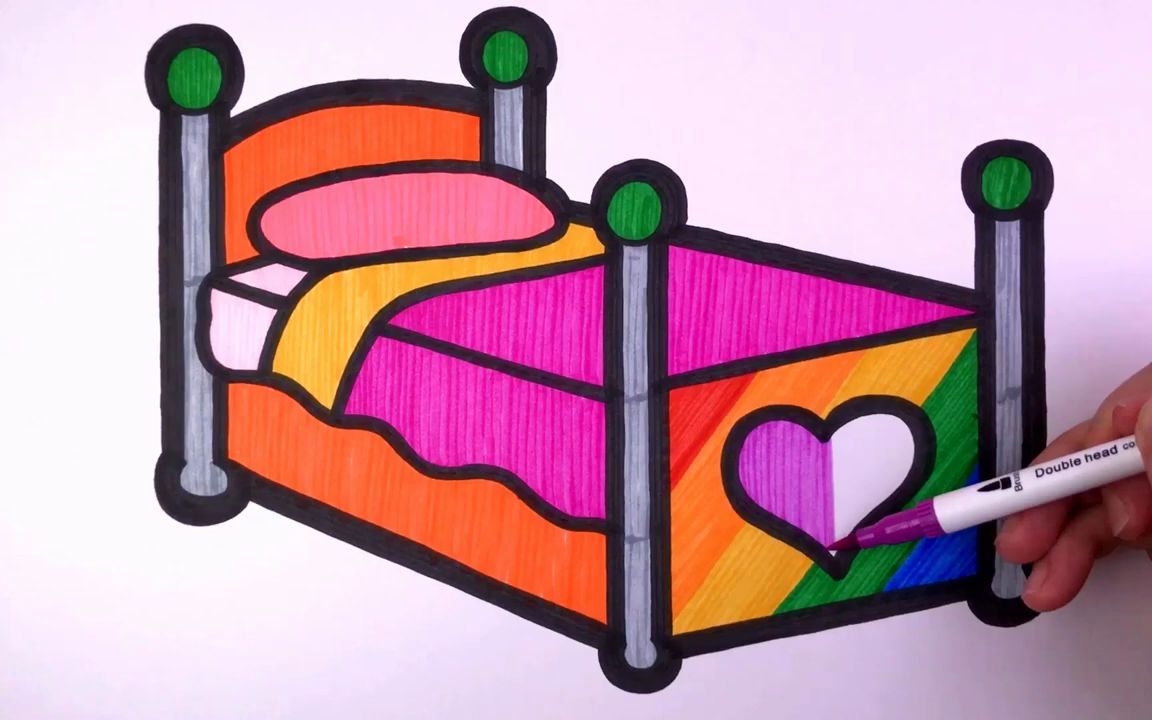 儿童益智简笔画启蒙,教会宝宝绘画儿童爱心床,涂上不同的颜色-母婴亲