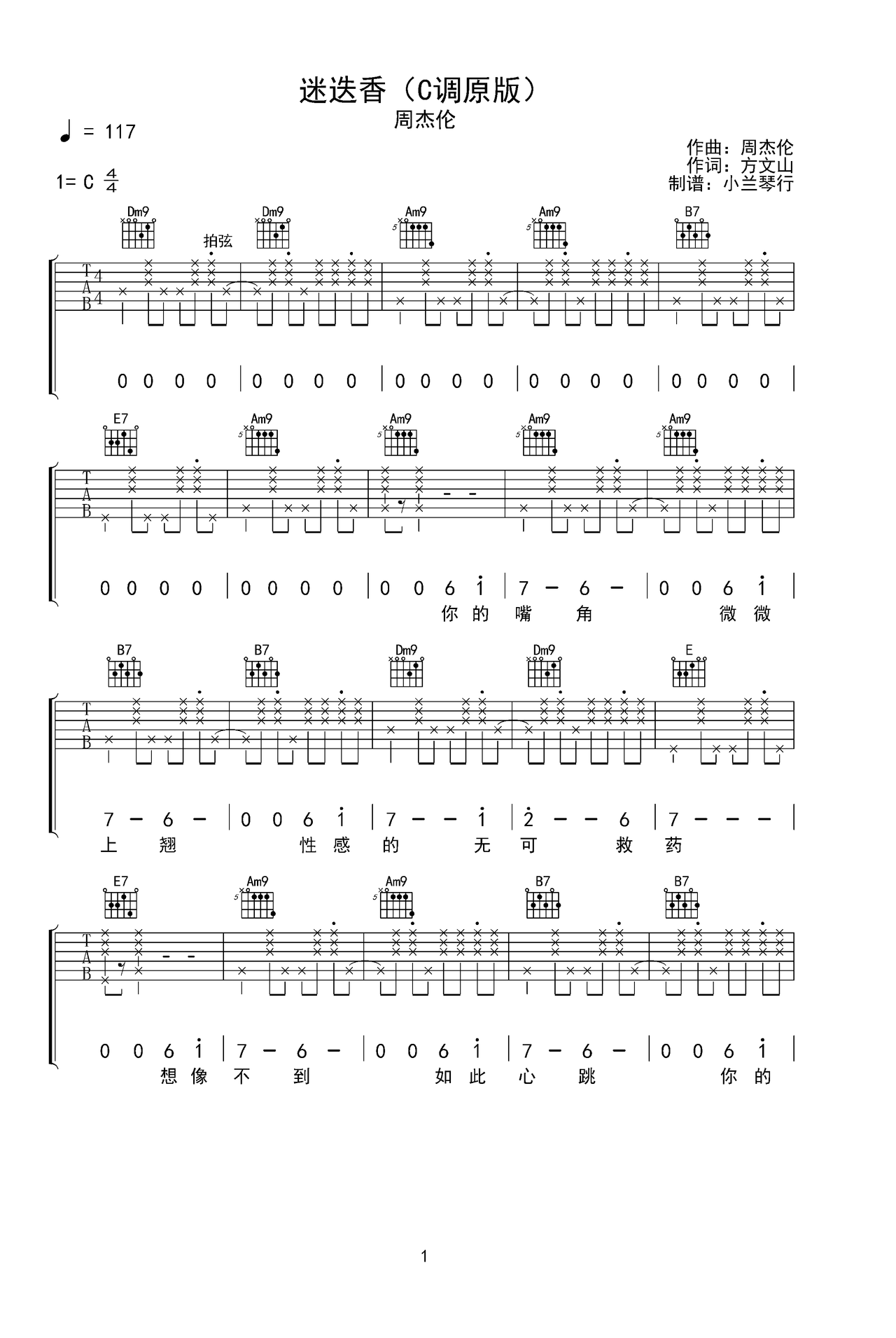 迷迭香吉他谱_周杰伦c调弹唱_回家路上up - 吉他世界