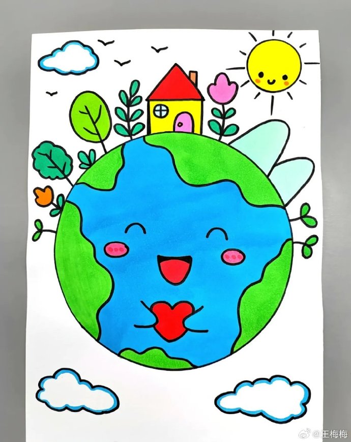 一起来画保护地球主题儿童画吧!保护地球,人人有责,暑假里陪孩 - 抖音