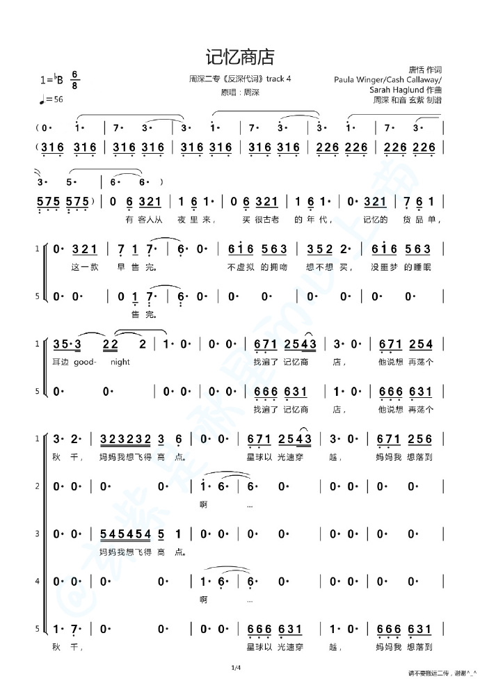 《记忆商店》简谱 你们看看有几层和声 周深这个人真是好恐怖的丛谮
