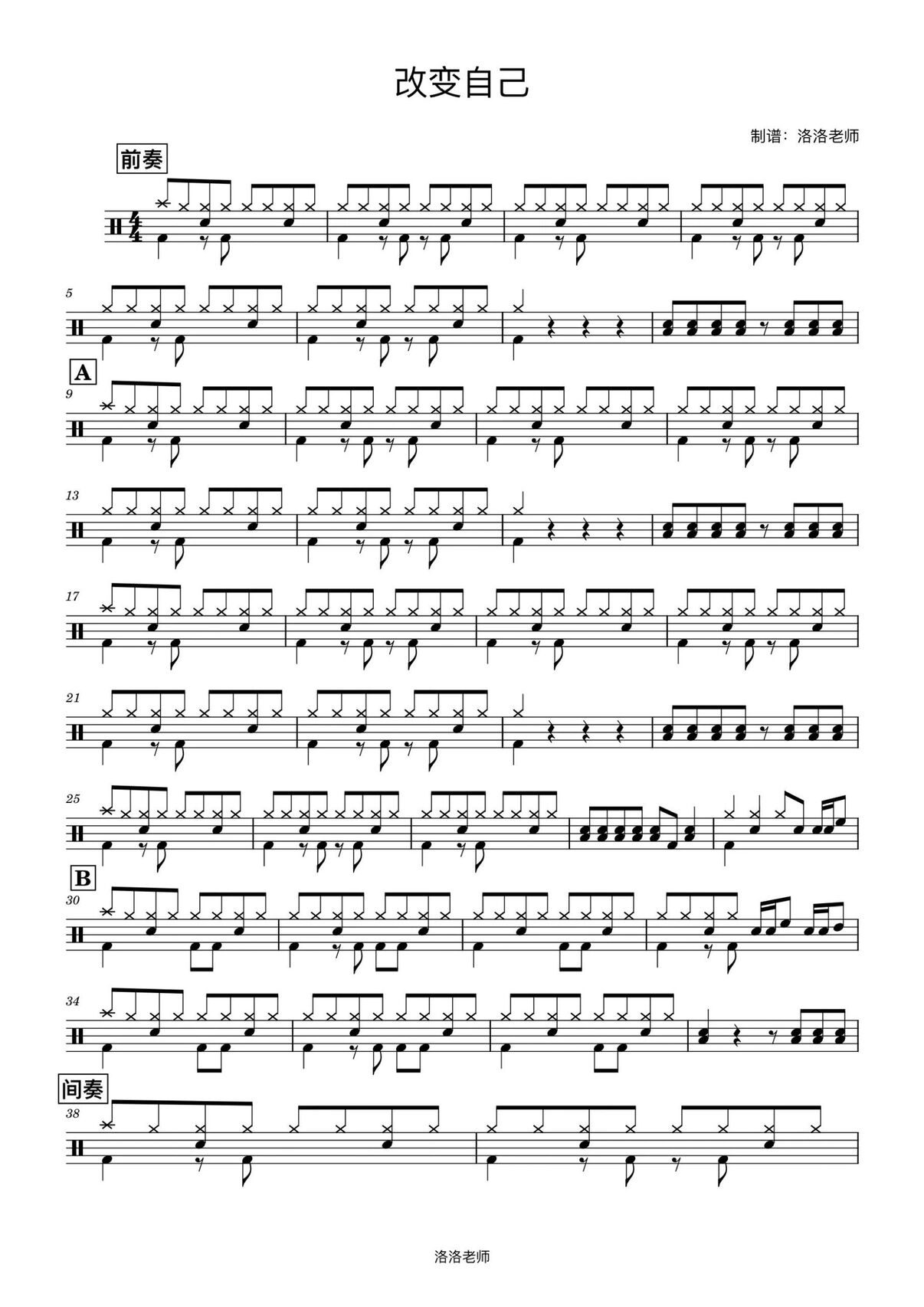 架子鼓谱许嵩曾经的你高清架子鼓鼓谱