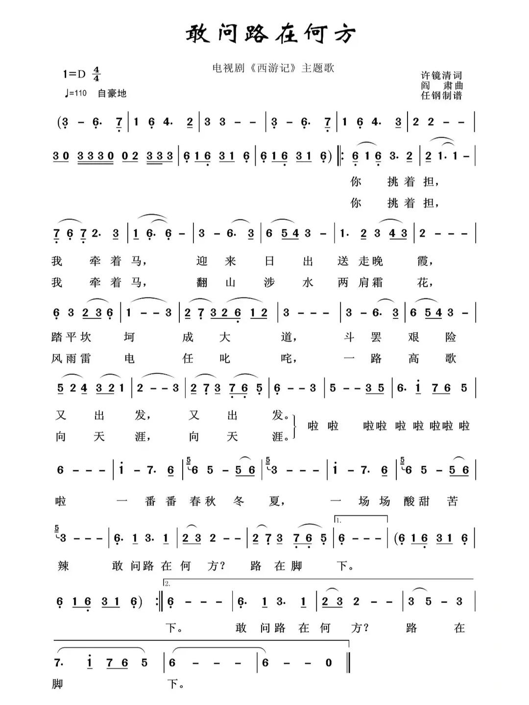 笛子简谱敢问路在何方