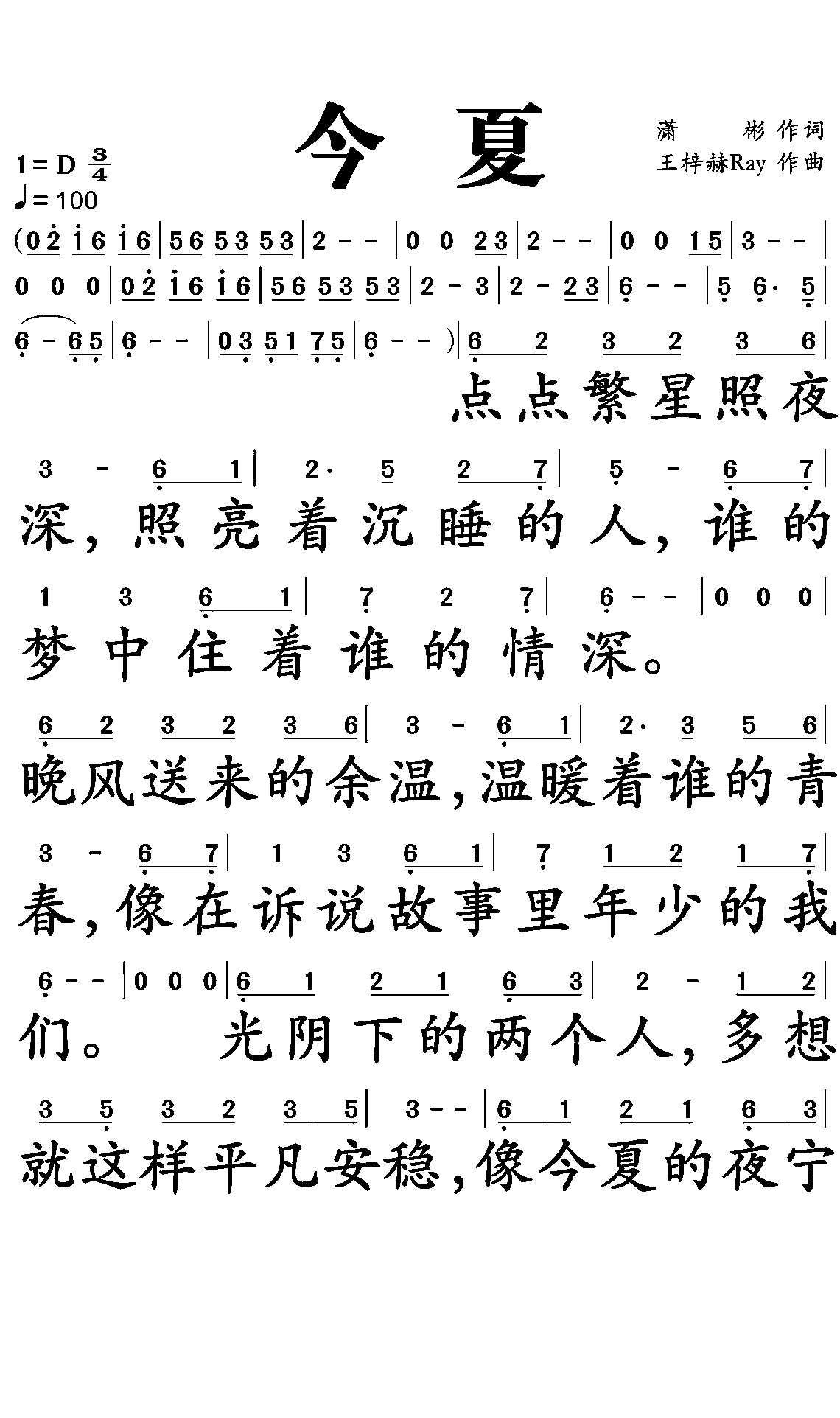 今夏简谱-谭松韵歌曲-孙世彦曲谱2