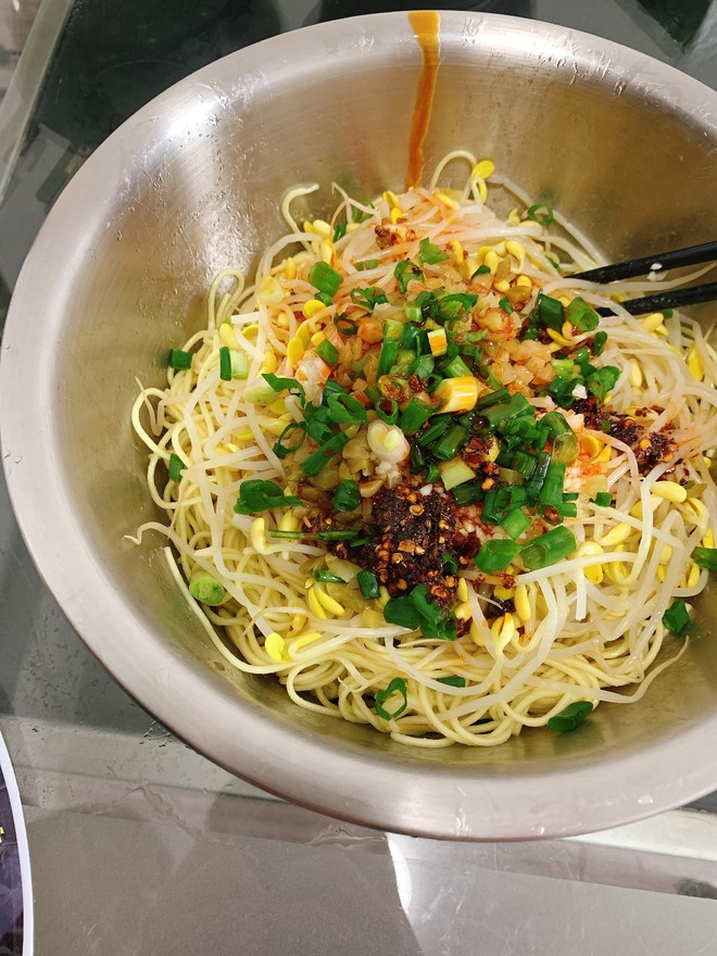 夏日美食川味凉面的家常做法,面条劲道爽滑,麻辣过瘾开胃解馋_绿豆芽
