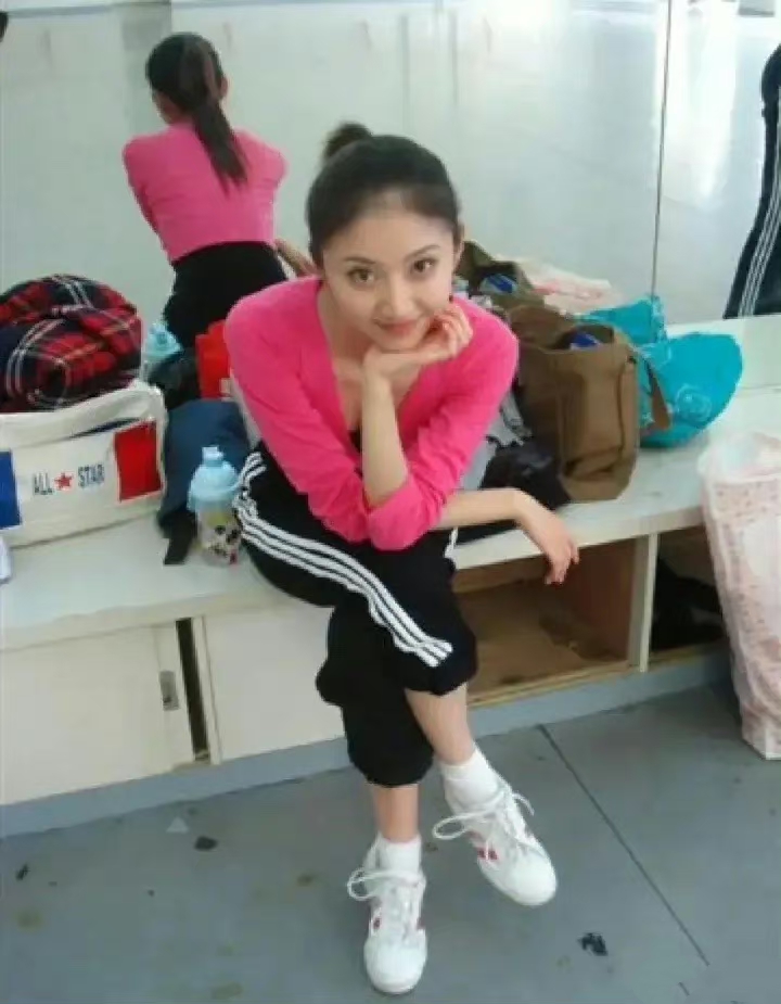 景甜在大学期间的练功照,虽是素颜却依然清纯可人.