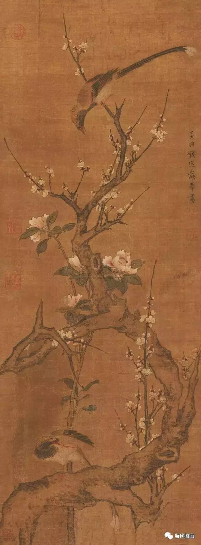 钱选的花鸟画保留了宋画写实的特点,但敷色一扫南宋的娇媚之风,开创了