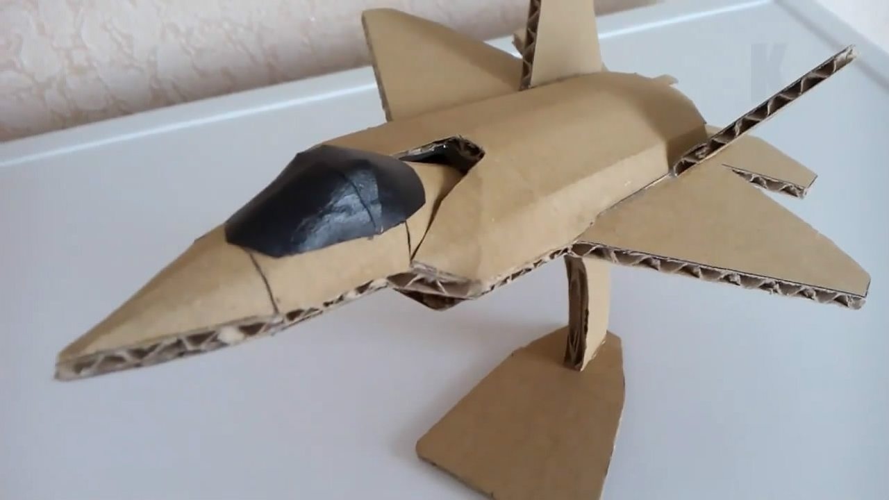 用纸板自制儿童玩具外形非常酷的战斗机看看他是怎么做的