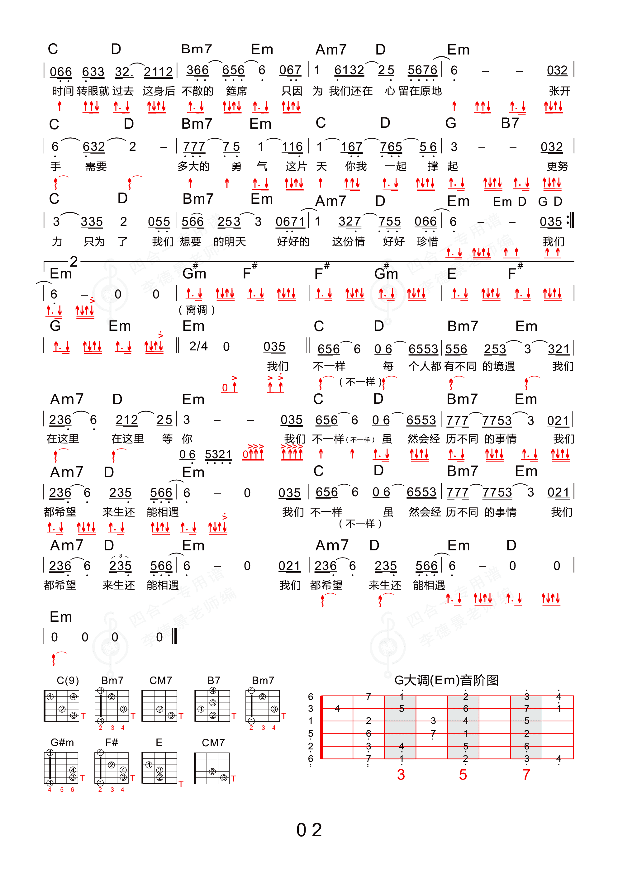 我们不一样吉他谱大壮大壮图片谱完整版吉他图片谱3张
