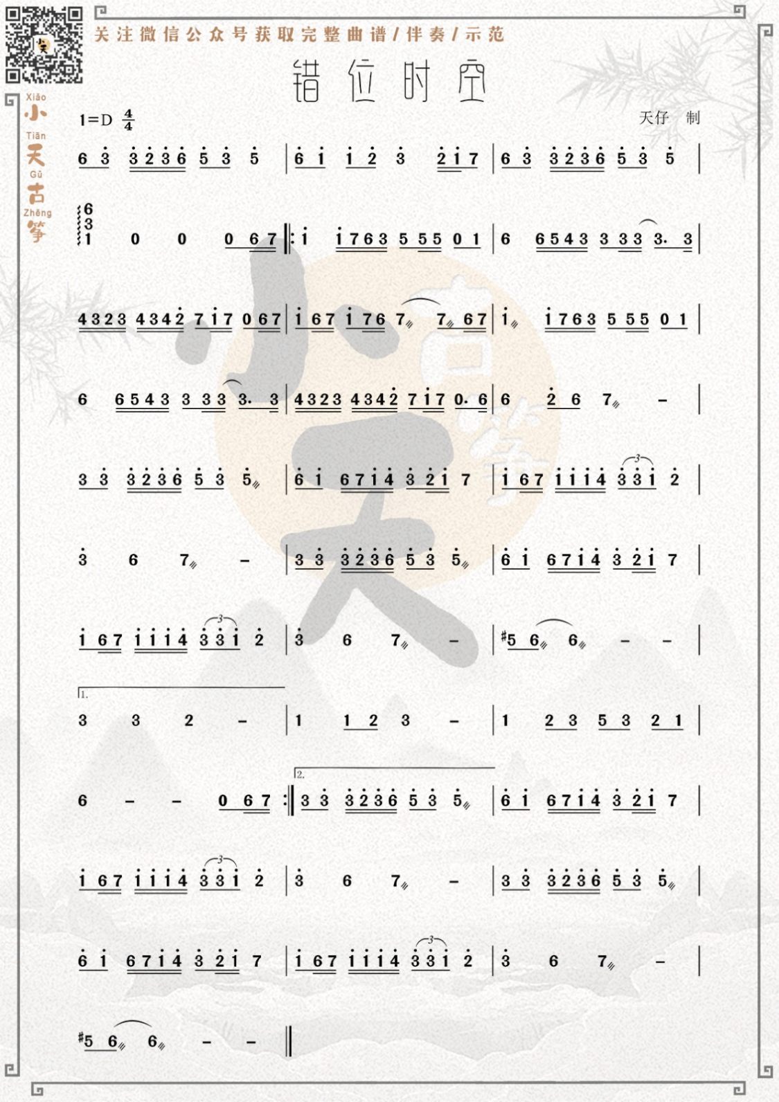 《错位时空》古筝谱_古筝曲谱_宁姑姑古筝曲谱网-海阔天行