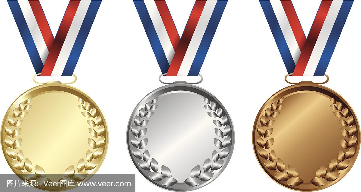 三款金属色的金牌银牌铜牌冠军亚军和季军奖章徽章奖牌185302png图片