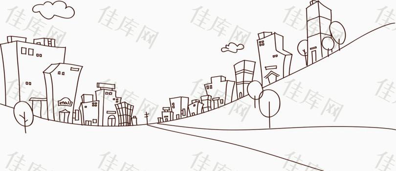城市轮廓简笔画高清现代都市简笔画都市印象简笔画现代城市背景简笔画