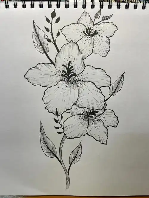来束小花花#花卉 #线描 #手绘 #百合花 #花卉绿植 #绘画日常