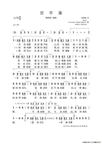 日不落(编配乐谱)简谱_日不落(编配乐谱)吉他谱_钢琴谱-查字典简谱网
