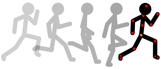 上图是标准的24帧步行动画关键帧示意图:每两个关键帧之间间隔为3帧