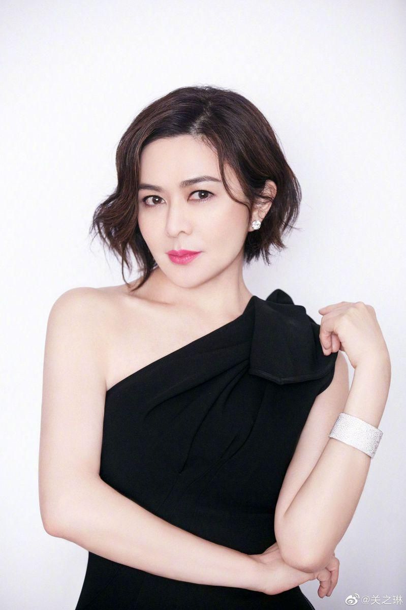 关之琳终于换新发型,穿一字肩连衣裙"扮嫩",中分长发最少显老10岁