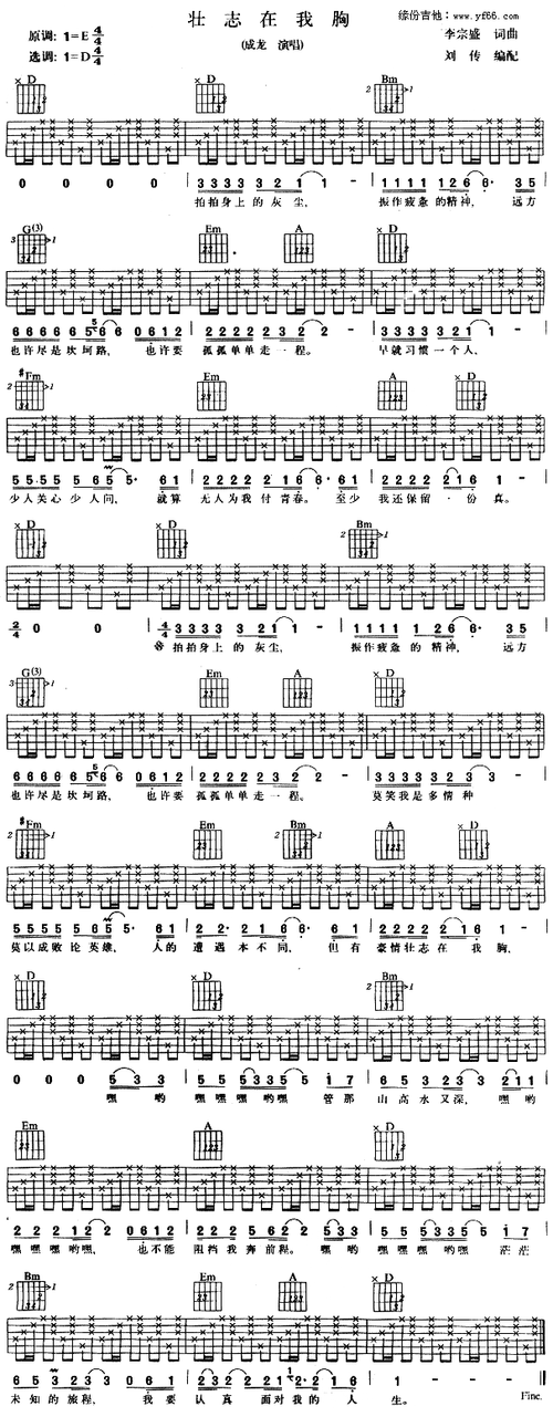 壮志在我胸吉他谱txt 成龙 壮志在我胸吉他谱c调查字典简谱网