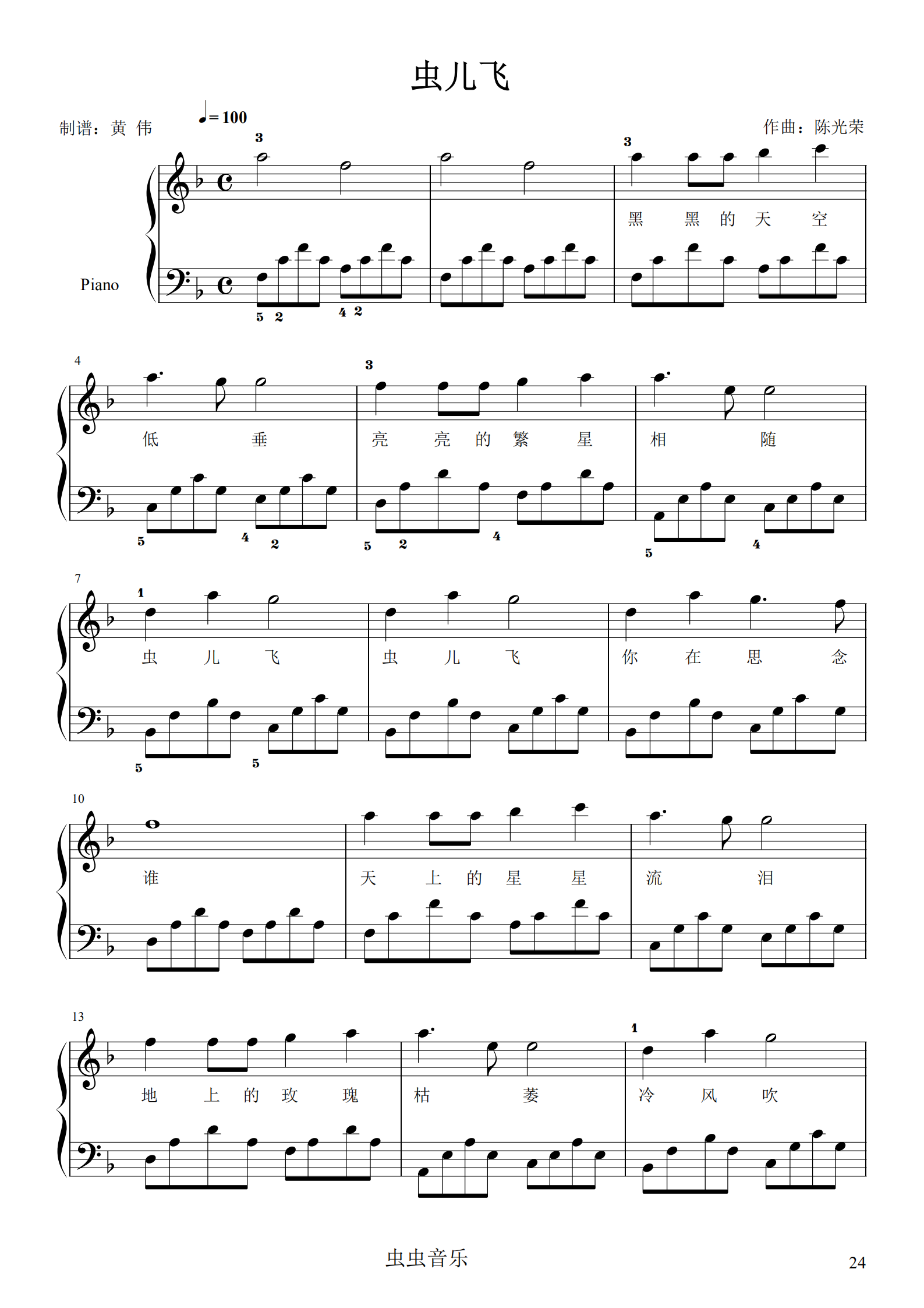 钢琴谱虫儿飞钢琴谱2页